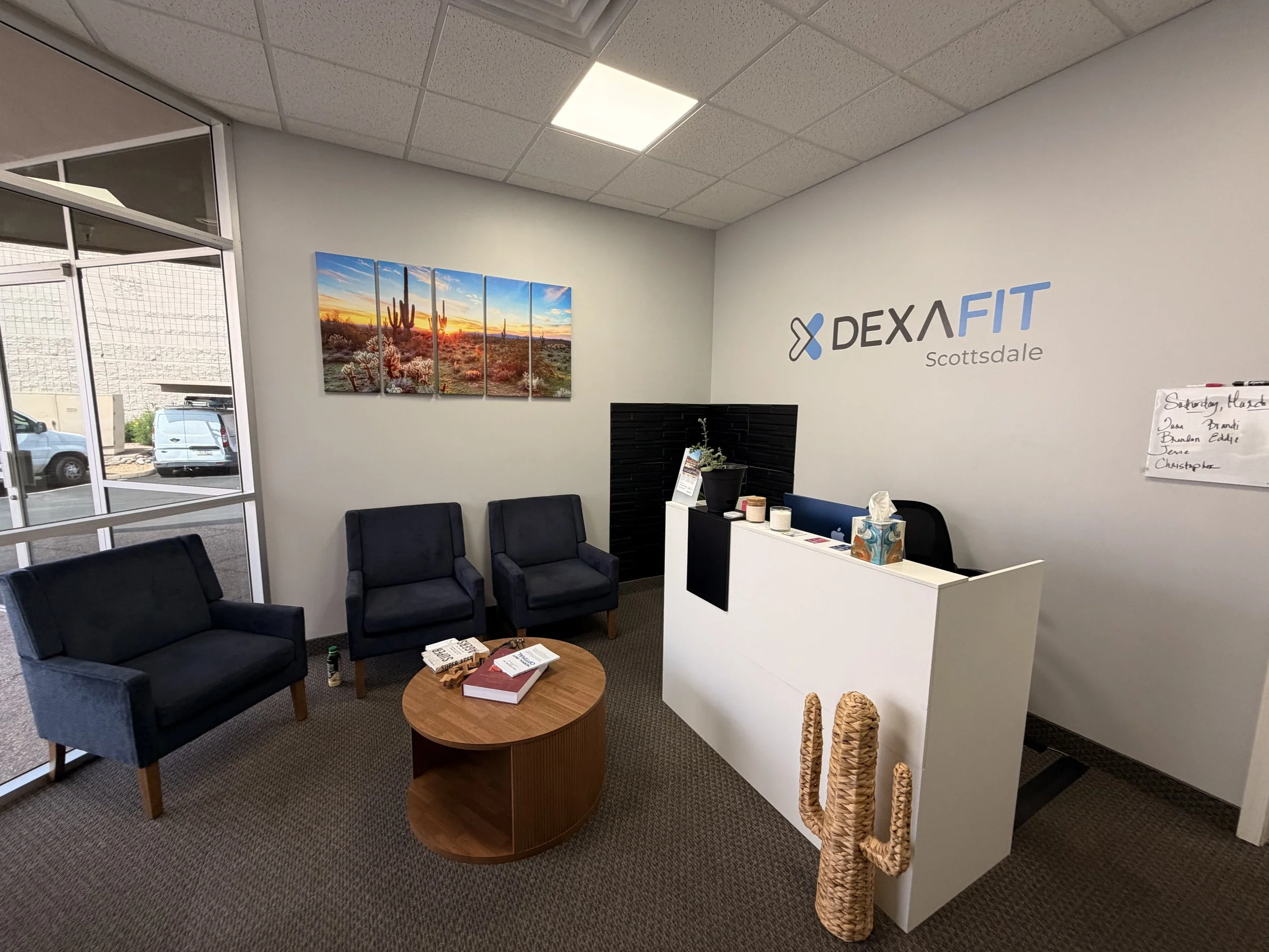Finding us: We're in the back of the complex. Look for our DexaFit sign and turn at the yellow parking bumper — four dedicated client spots are reserved right at our entrance. If you're coming from the north on Hayden, you'll need to pass us and make a U-turn at the light.
